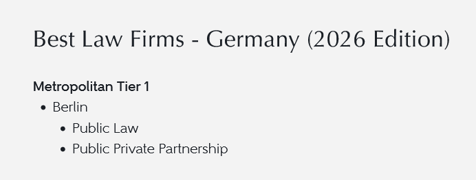 Best Lawyers & Handelsblatt haben erneut SOUDRY & SOUDRY Rechtsanwälte als Top Kanzlei und Dr. Daniel Soudry, LL.M. als Top-Berater in den Bereichen Öffentliches Recht und PPP ausgezeichnet.